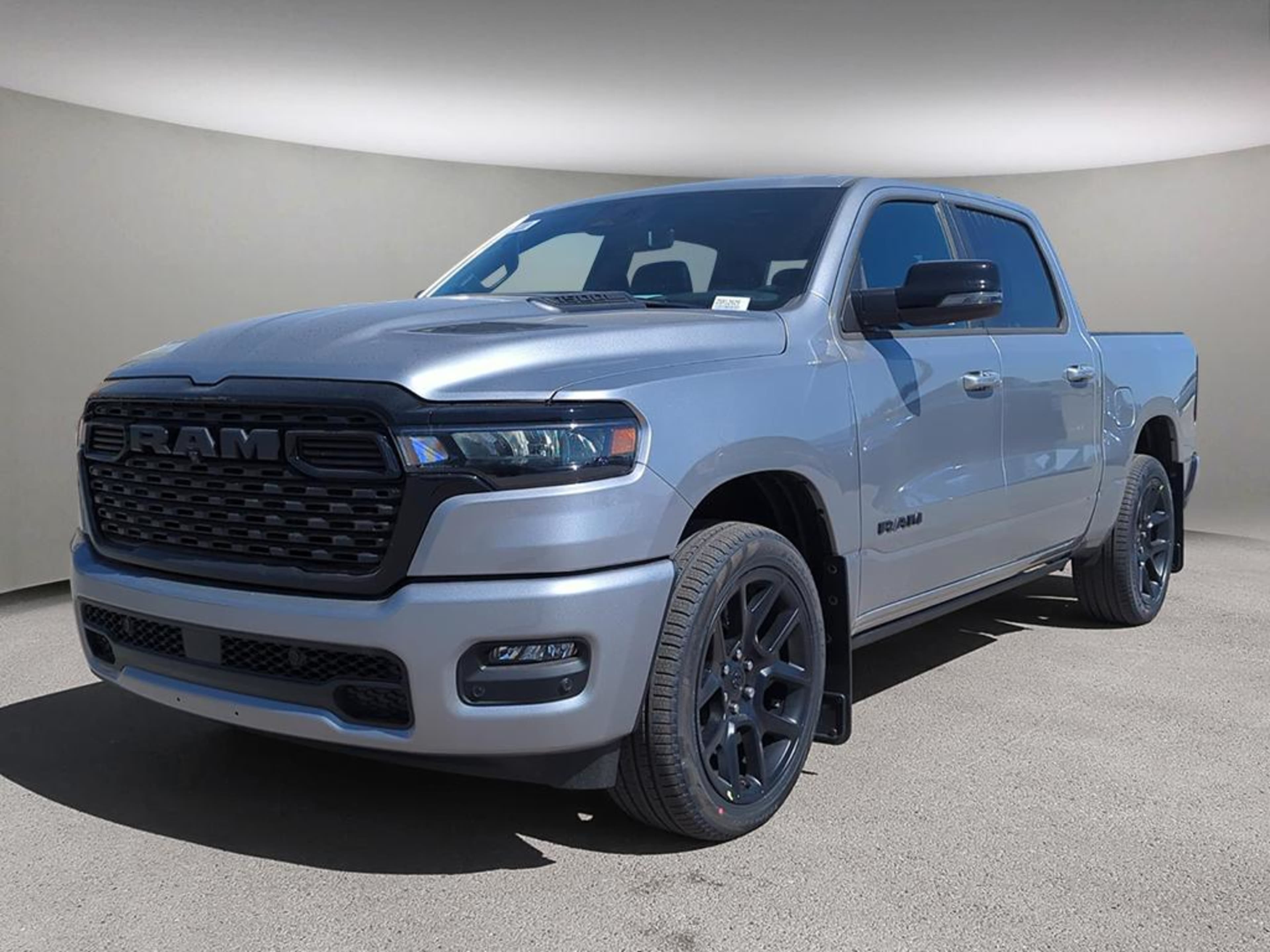 The 2025 RAM 1500 Sport Crew Cab 4x4 in Billet Silver Metallic stands out with its sleek, modern exterior and refined interior, combining rugged durability with luxury. The striking Billet Silver paint gives the truck a polished, professional look, while the black interior with leather-faced front vented bucket seats offers a premium, comfortable cabin perfect for both work and relaxation.